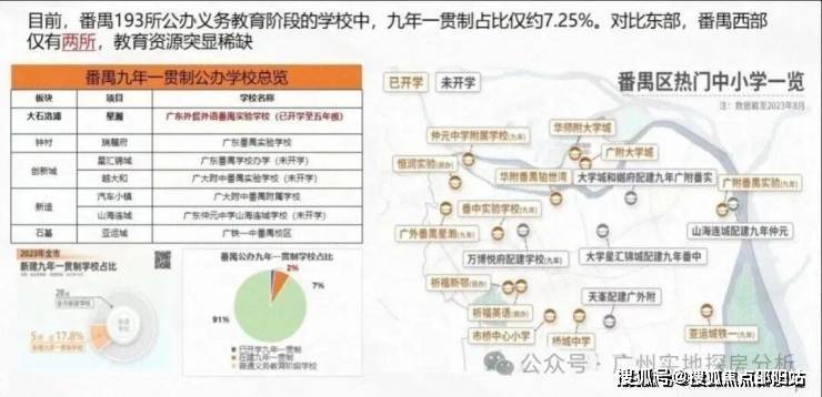 社区内部配建一所27班公办悦乐美幼儿园和45班九年一贯制公办广外附校均已开学一共提供1350个小学学位和750个中学学位,而且可以插班。