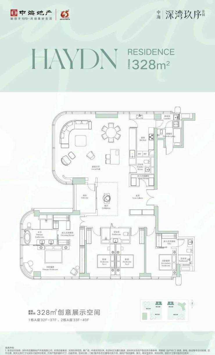 ①328平4+2房4卫,楼王户型,位于1栋A座01/02户,正南朝向,看小区园林景观。独立保姆套间,外立面采用270度玻璃幕墙,采光和通透好!