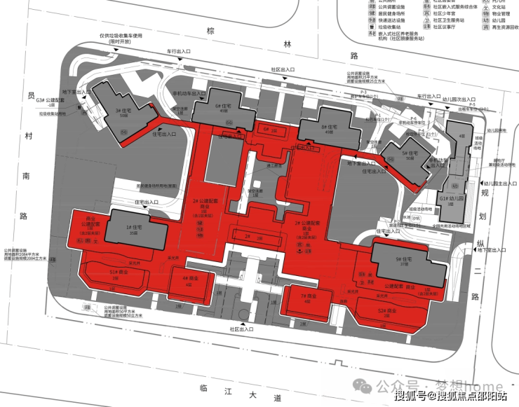 项目配建巨量底商(红色部分),未来极有可能打造成为会所,顶部承担屋顶花园功能。