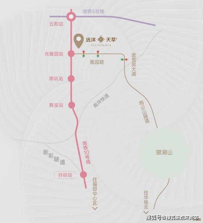 地铁配套:远洋天萃家门口就是10号地铁线“光雅园站”B出口,小区地下室直通地铁站,1站到五和枢纽站可换乘5号地铁线/深大城际,3站可到龙华深圳北站,3站到福田、4站到南山。