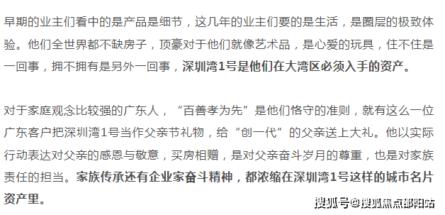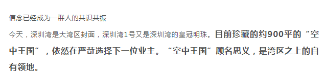 深圳湾1号让精英们趋之若鹜的原因,是“懂得赚有钱人的钱”。就像上面那位“中国巴菲特”形容的,财务自由了,遇到触动灵魂的东西,绝不能错过,绝不能留遗憾。