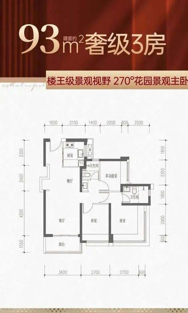 93㎡的3房2厅2卫,设计的是竖厅格局,客厅3.4米开间,LDKB一体化,S墙设计预留冰箱卡槽位,3个卧室分别做到了主卧13.55㎡/次卧9.45㎡/次卧7.67㎡(包含墙体飘窗),U型厨房,公卫三段式分离,得房率约77%(不含赠送),东南朝向。✨✨鸿荣源珈誉府售楼处电话:400-859-7606【售楼处已认证】✨✽✽✽✽