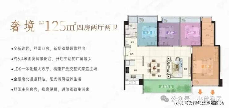 125㎡四房两厅两卫为改善型户型,位于 3 栋高楼层,带装修总价约 350 万起,双阳台设计,主卧带独立卫浴和步入式衣帽间,能俯瞰社区园林与山景,适合多人口家庭。