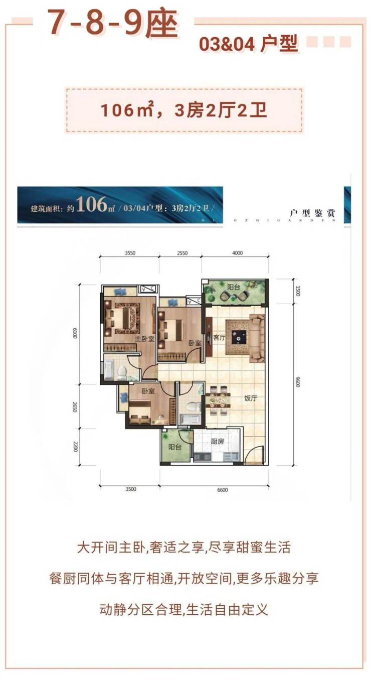 建面约106-149㎡三至四房品质高层。个性化户型设计,恰到好处的空间法则,诠释生活的理想尺度,记录下生活的美好与安逸。