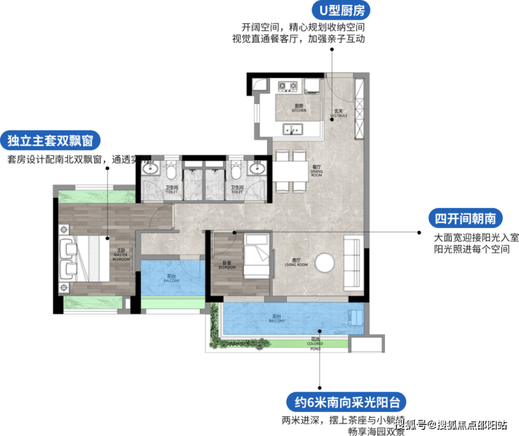 82㎡三房两卫,小户横厅重出江湖,片区内绝版横厅小户强势补货。南北对流,四开间超11米采光,270度超大角度采光,海园双景皆可拥有。