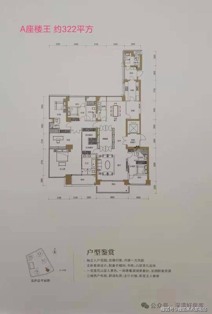 北庐住宅户型:建面约210㎡、235㎡、266㎡、322㎡,410-470㎡(复式)