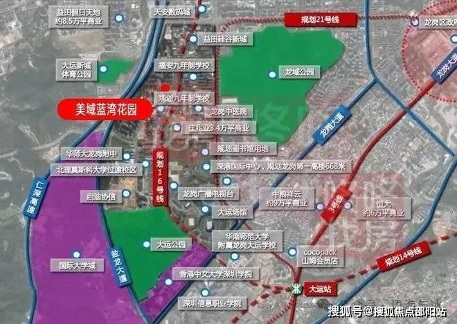 依托大运深港国际科教城发展规划,划定大运超核城市区位,以大运中心为轴心,搭载旗舰商业集群、顶级文化体育场馆、枢纽级交通、城市级音乐厅等全维配套,是大运发展规划的正轴心,配置对标后海规划,未来将成为东部最核心的发展极点