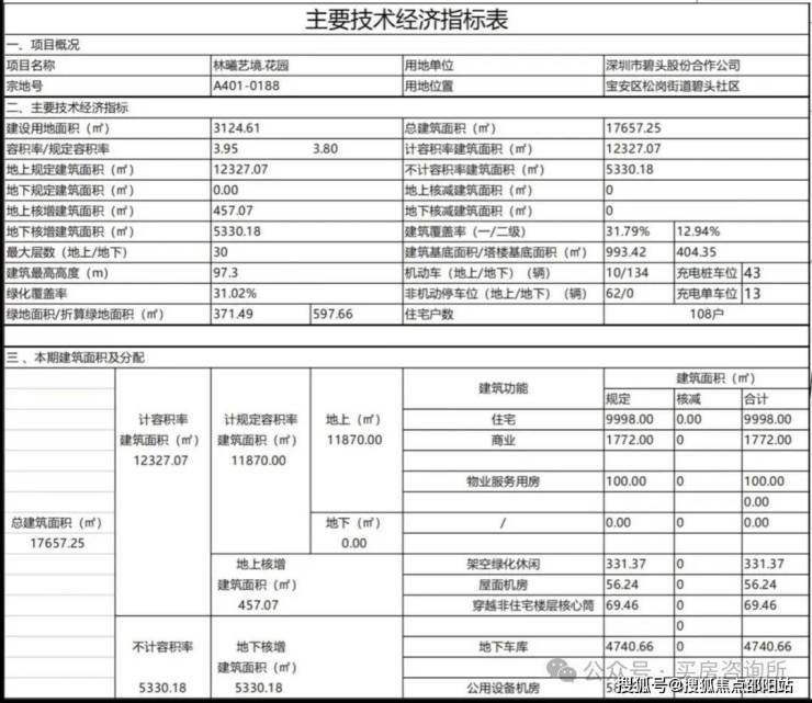 北地块建设用地面积0.31万平方米,总建筑面积1.77万平方米,计容建筑面积1.23万平方米。容积率3.95。只有一栋楼总层高32层,住宅户数108户,地下机动车位134个。2梯4户设计