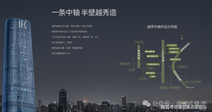 越秀地产 40 余载与广州共成长,在广州打造超150个住宅项目,拥有超40个商业项目,深度参与广州中轴线建设,比如中轴线上西塔、越秀金融大厦等地标,为城市转型升级提供助力,成就广州市民美好生活。