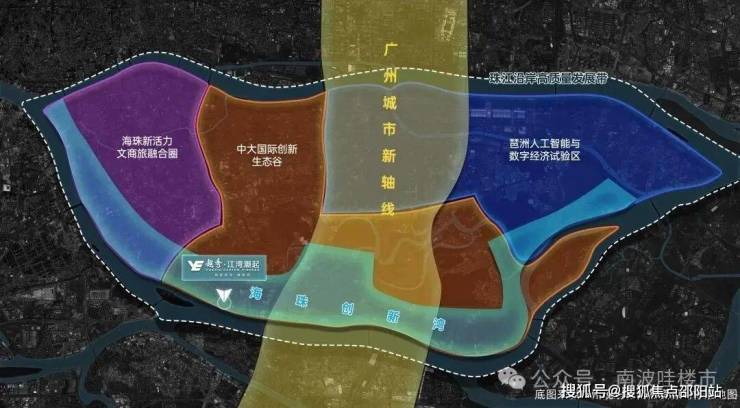 地处广州城市新轴线、珠江后航道和中大国际创新谷三轴交汇处,立足城市未来生态宜居、经济活跃、文化繁荣的滨水区域。