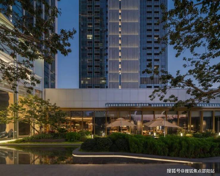 酒店低区大跨度折线玻璃幕墙是项目一大亮点,得益于此空中大堂及酒店宴会前厅拥有两层通高的空中通透视野,结合充满艺术气息的大堂吧以及露台花园带给客人非凡的入住体验,夜间两个通透的折面玻璃犹如悬浮的水晶体一般引人注目。