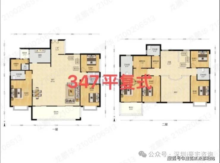 这个是55栋03户型,347平中空复式,8房3厅5卫,高层(33层)两梯三户,共16套,进门送入户,超大客厅开间,正南朝向,看小区别墅和山景,特点:房子够大,房间够多,适合三代同堂居住。