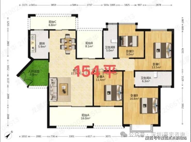 这是01户型166平5房2厅,两梯三户,进门送入户,南北通双阳台,前后景观无摭挡,原始5房结构,这个户型里面房间更大,北面阳台会小些,小区中心位置安静,私密性高。