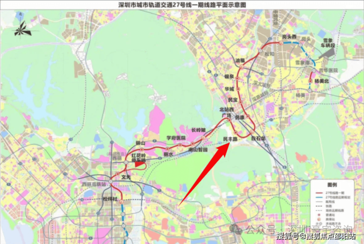 27号线就在小区门口(民丰路站),出门即到,18个站点已围档15个点已开工,完成比例15.8%,真正实现豪宅也能有地铁。