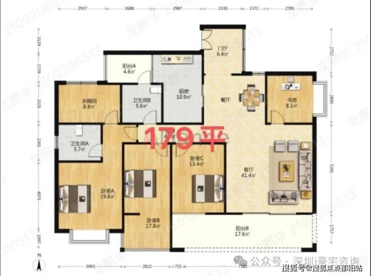这是03户型179平4房2厅,两梯三户,进门送入户,正南朝向,看美丽山景,原始4房结构,很多客厅房间打掉改成三房,11米长大阳台,相比没有这么通透,位置安静,私密性高。