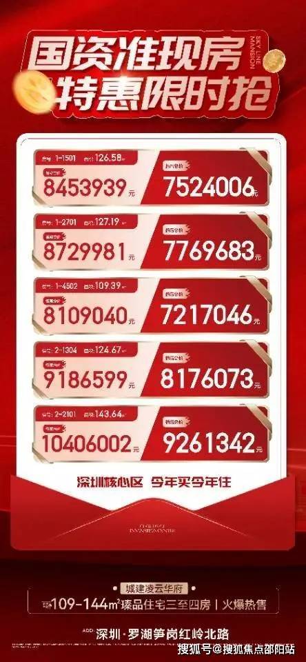 罗湖——【凌云华府】深圳黄金中轴-笋岗精装准现楼!面积80~144平 品质2-4房,4地铁、一站菁英式教育!