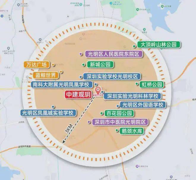 光明城片区在建的13号线二期北延同观路站一路之隔——中建·观玥名邸=位置来说属于光明城高铁站附近几个盘中最好的位置,此次拿证价格上看确是最具卷的一个!!