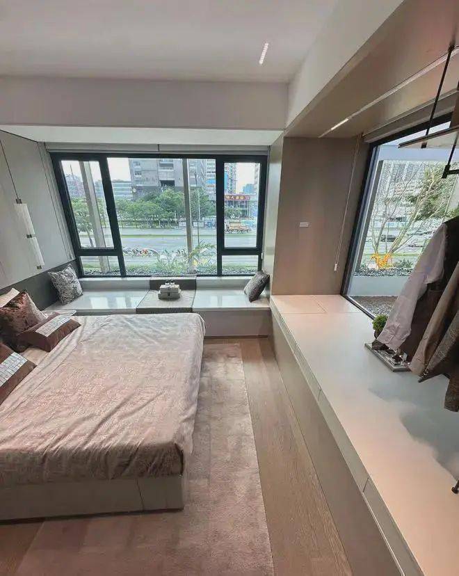 主卧双飘窗的设计,增加了采光,避免了暗房;大阳台、多飘窗,整个户型的赠送面积比较多。