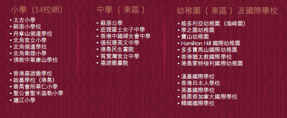 皇都周边汇聚了丰富的教育资源,提供了从小学至中学的优质教育环境。项目所在的学区包括多所传统名牌学校和国际学校,如香港嘉诺撒学校和北角循道学校等。港岛东区的中学教育也同样出色,拥有庇理罗士女子中学、张祝珊英文中学等名校,能满足不同年龄段孩子的教育需求。