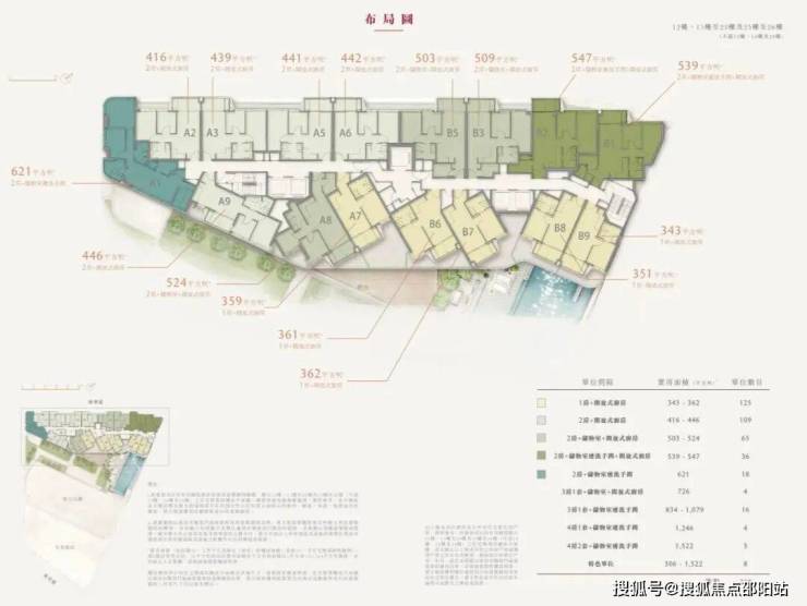 特色户实用面积306至1522呎(约28平至142平),8伙(平台特色户7户,顶层特色户1户)。