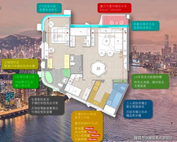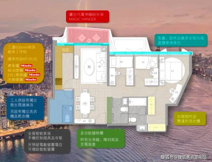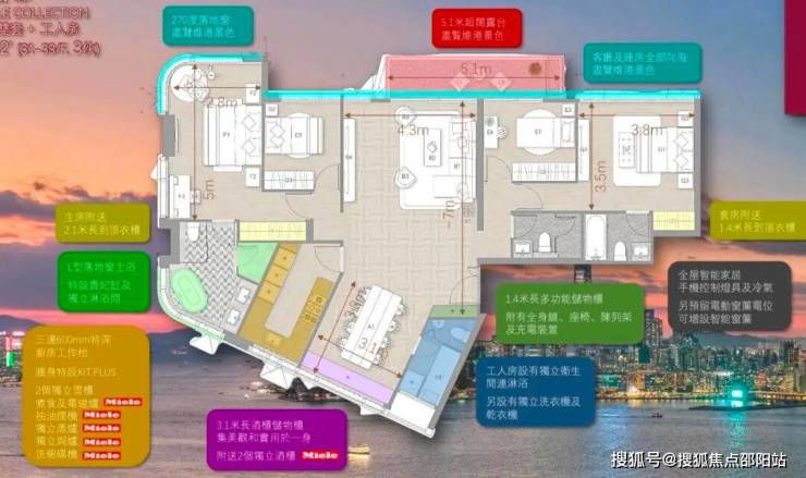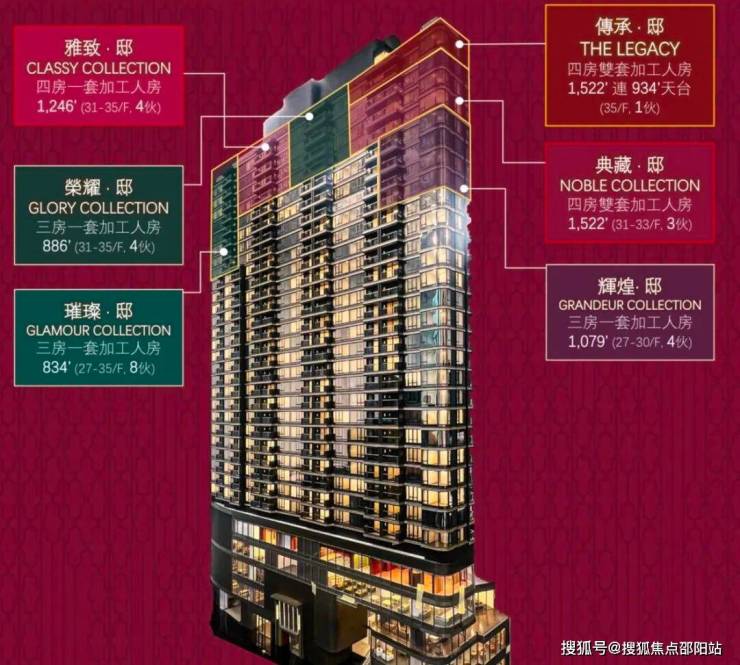 住宅分为Victoria Zone、Signature Zone两个区域。Victoria Zone为27楼以上的单位,大部分拥有维港烟花海景景观。