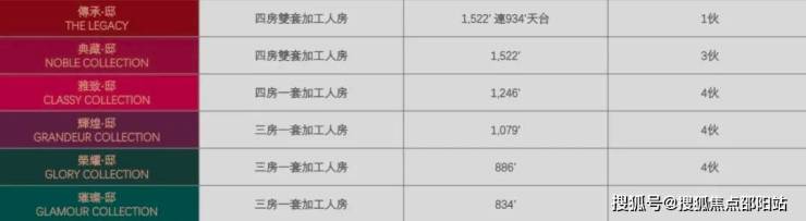 4房实用面积1246至1522呎(约116平至142平),占7伙;