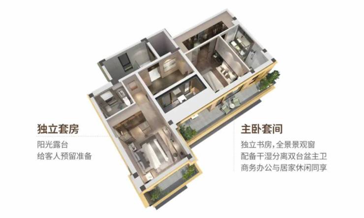 双卧配置,左侧套房带独立阳台,可做宾客房间