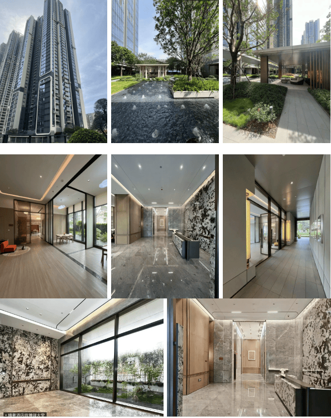 宏发做的房子品质素来比较在线,项目入户大堂以精奢酒店风为主,采用大面积的透光玻璃和石材,实地看档次不错。