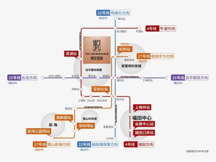 距离4号线清湖地铁站A1出口100多米的距离,5站深圳北,8站福田;龙华还有22号线、25号线、27号线在建。