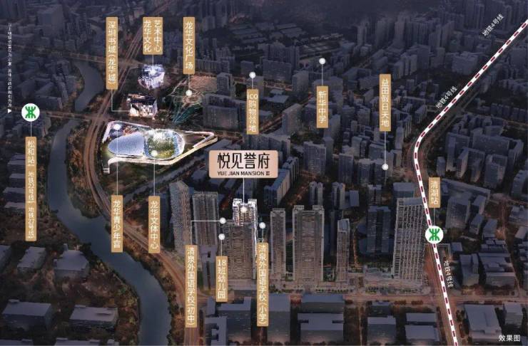 「悦见誉府」是宏发在龙华开发的55万㎡书香大城三期,位于龙华中心,临近清湖地铁站A1口、有轨电车清龙站。周边有几个巨型公配,分别为龙华文体中心、深圳书城(龙华城)、龙华文化广场等。