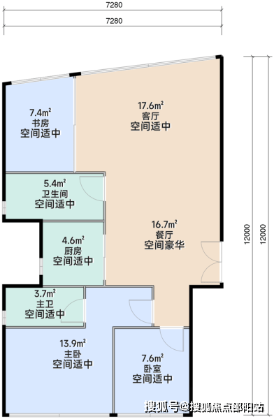 128㎡ 三房两厅两卫一厨(约1378平方呎)