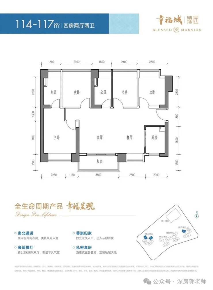 二单元:56F 4梯6户 96-117㎡3-4房;