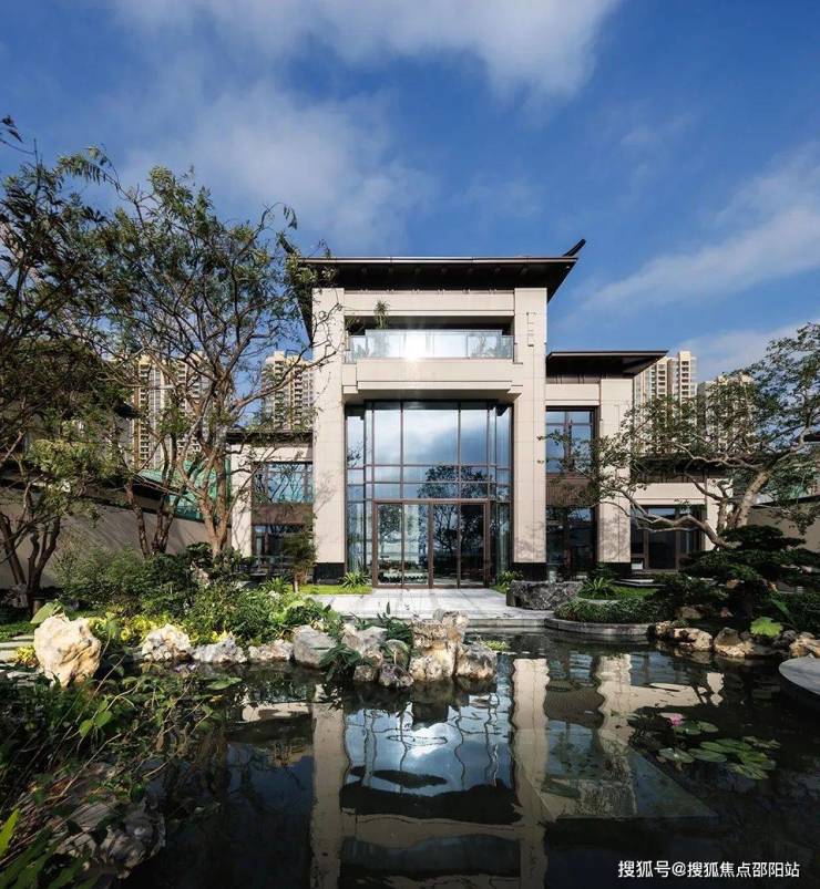 华发院子秉承着华发向来注重产品通透、采光好的理念,屋身选取石材、真石漆搭配大面积玻璃面造型,屋顶选取庑殿顶设计,并运用铝板材料,整体典雅大气又保障了光照和对流。