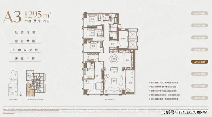 纯粹大宅,极致层高。项目首发产品涵盖建面约209㎡至1150㎡,起步即为大宅,部分户型尊享双梯入户,联动奢阔客餐厅、中西双厨与阔景阳台,辅以多套间布局,勾勒出从容优雅的生活图景。