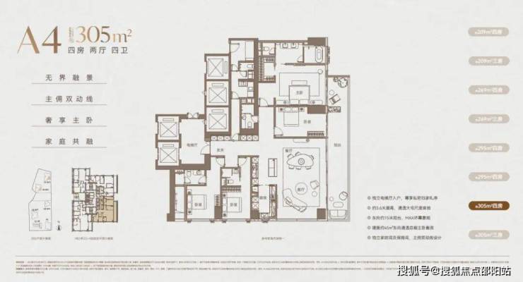 针对建面约305㎡及以下户型,项目提供了两套风格迥异的定制方案: