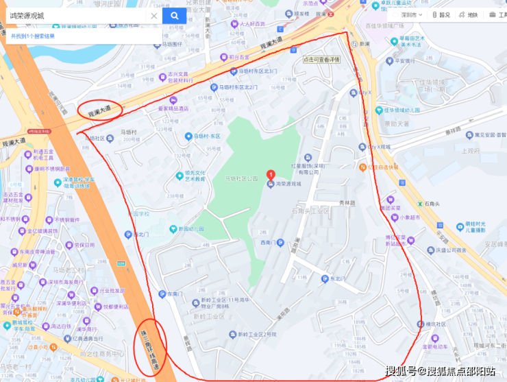 观城和鸿荣源以往甚至全深圳以往的大型旧改比较大的区别是,项目规划建设5大公园融入社区,改变了过去旧改项目都是超高容积率的惯例(楼盘高容积率,但片区不算是),并且规划了高速公路(梅观高速)直接连通项目车库,这是极具创新的实践。
