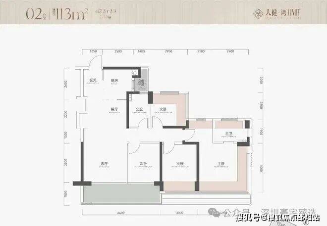 户型为113㎡四房114四房和139㎡五房约290套,2栋100米内30层住宅,2梯5户,其中主力为113㎡四房,整体以朝南及西南为主,有两套朝东北面向金众。
