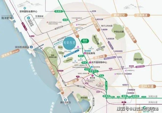 1. 地理占位:湾区西拓战略要地项目傲立于宝安区西乡街道航城大道与宝安大道交汇处,紧邻地铁1号线固戍站(直线约200米),3站直达宝安中心,6站接驳前海核心区,未来可换乘规划15号线(2028年开通)串联西丽高铁枢纽。作为前海8倍扩容区(120.56㎞²)与大湾区“黄金内湾”核心承载地,坐拥腾讯“互联网+”未来科技城、铁仔山国家高新区等千亿级产业矩阵,未来将吸引超10万高净值人才聚集