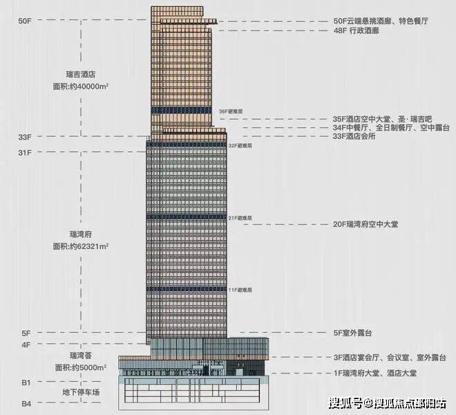 (5-19层底区,20-31层中区,33-51层瑞吉酒店)