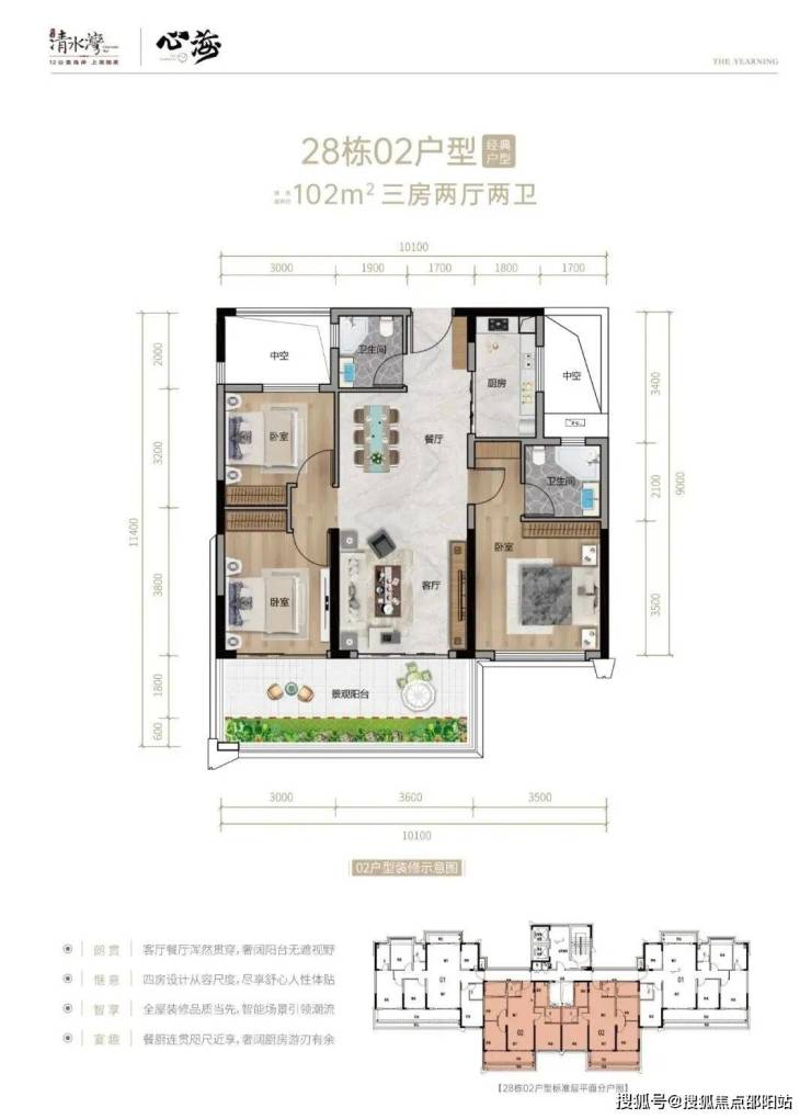 10号楼102㎡三房两卫户型10号楼106㎡三房两卫户型28#02、03号位 三房两位户型