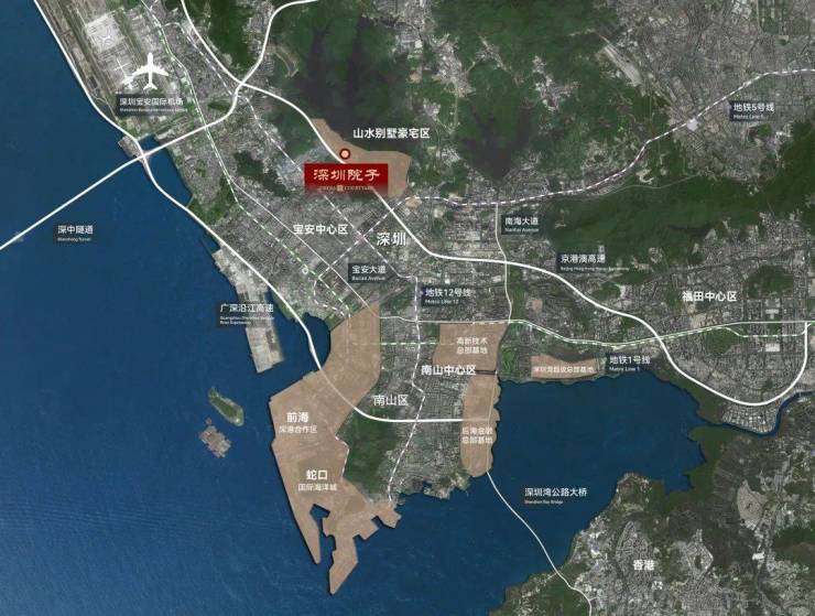 作为前海中部黄金发展带和东部生态休闲带双极核心辐射区,深圳院子所在的尖岗山墅区,纯净天地,咫尺繁华。一面执掌枢纽,海陆空轨立体路网纵横市心,迅捷到达前海、宝中、福田与罗湖,畅达码头与机场,直达港澳,无缝连接大湾区;一面依山而建、傍水而居,坐拥六山、四园、两水库,623公顷生态绿轴入怀,相当于3个莲花山及5个香蜜湖,原生都市绿肺在门前绵延。出则繁华,入则静谧。