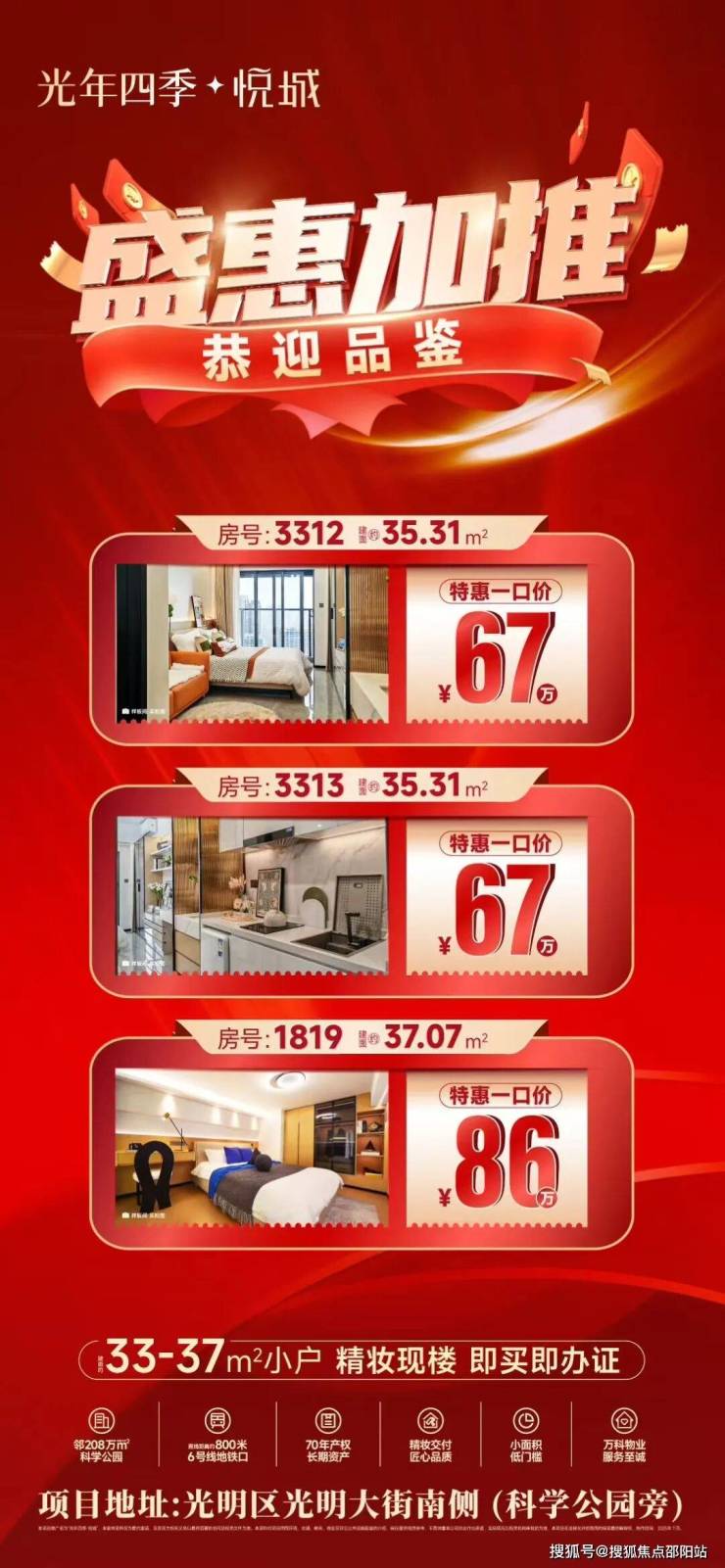 建面约33-37㎡低门槛极致上车盘,抢投光明中心区优质资产。