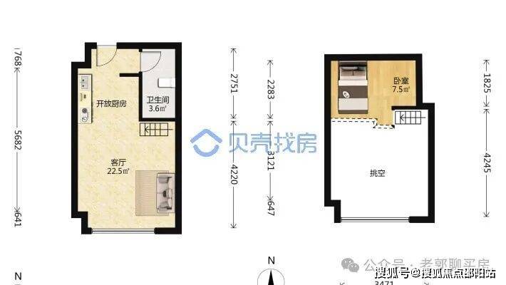 图1:低楼层 (共26层) 1室1厅 | 41.7平米 | 南 北