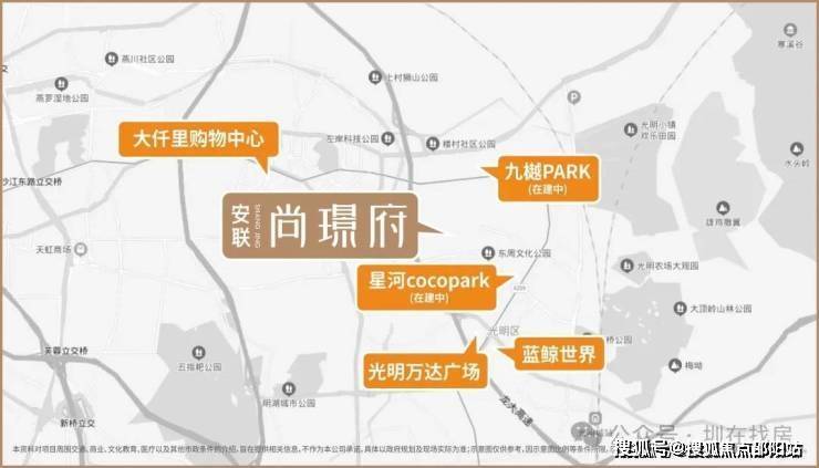 🛍 🛍 项目周边商业配套面积超过15万㎡,如光明广场、大仟里购物中心、万达广场、天虹商场等多所商场环绕,竭力满足生活所需