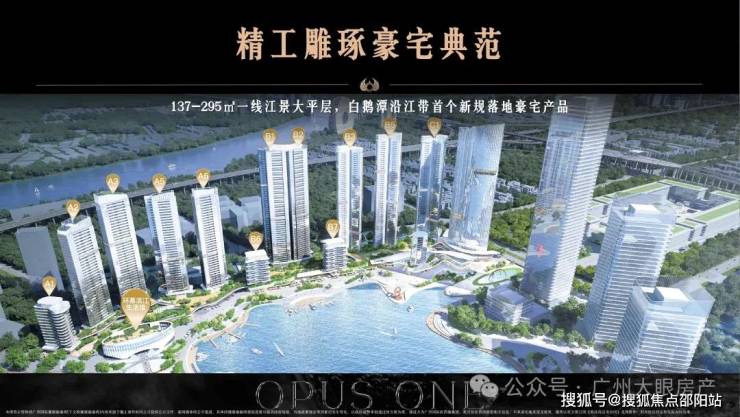 保利珠江天悦项目共规划12栋住宅,沿着江岸线一字排开,全部打造的是3.0江景新规产品。