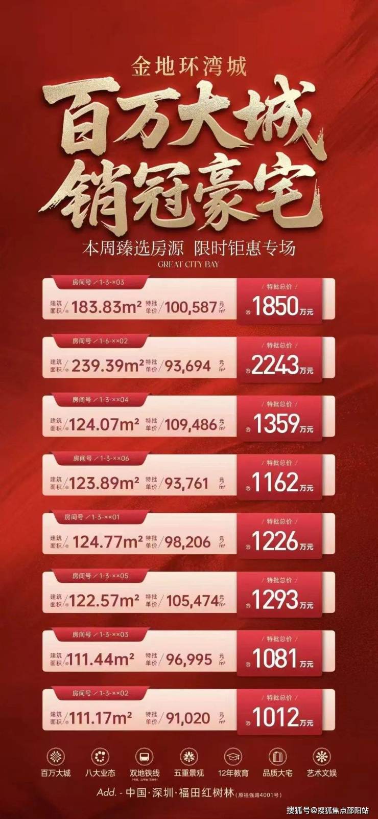 「金地环湾城」加推6栋3单元已拿证,面积111-125㎡,备案均价约10.7万/㎡,开盘约94折,一次性付款93折,折后均价约10万/㎡,折后单价8.8万/㎡起。