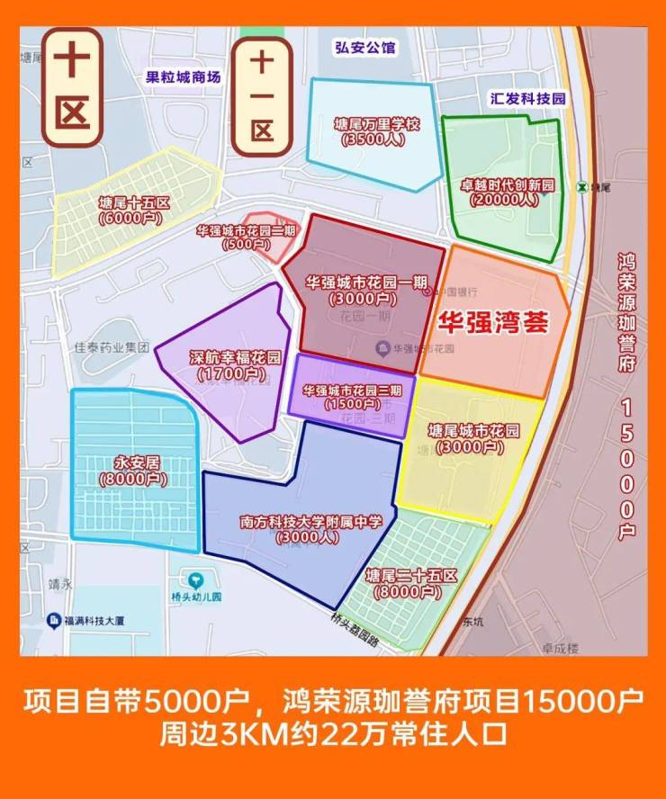 塘尾幼儿园、规划幼儿园、塘尾万里学校、深圳市第十二高中、深圳市桥兴学校和景山实验学校六大学府环伺,万名学子汇聚,教育消费需求无缝承接。