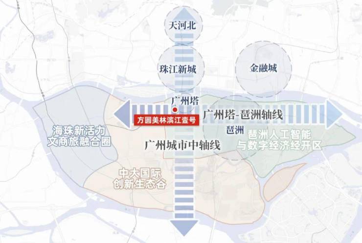 在我看来,和许多“蹭”中轴的项目不同,方圆美林滨江壹号乃是妥妥的中轴C位,而且还在珠江新城-广州塔、广州塔-琶洲两大轴线的交汇处,出生已经躺赢。