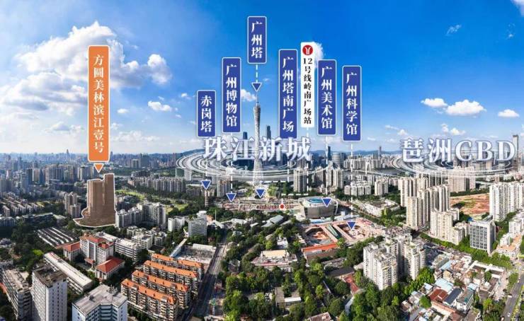 从上帝视角来看,在项目近距离可视范围内,广州塔、广州塔南广场、广州美术馆(新馆)、广州博物馆、广州科学馆等地标群,共同构筑成了一道靓丽风景线。