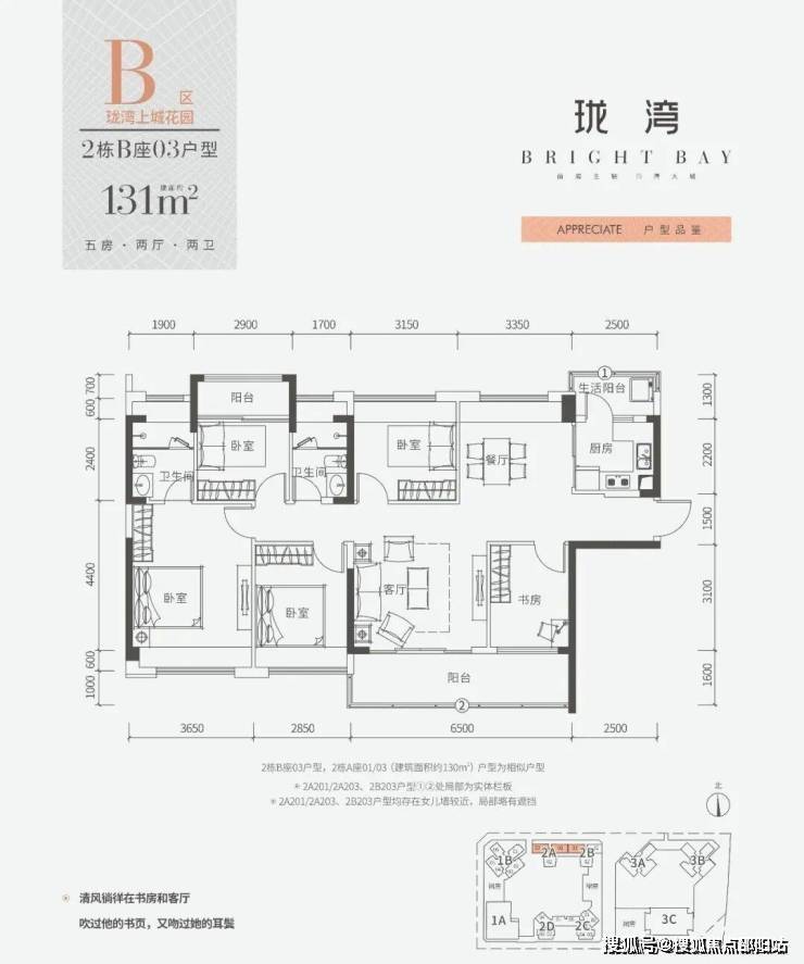 二至五居室:62㎡起(涵盖平层、朝东设计等)。